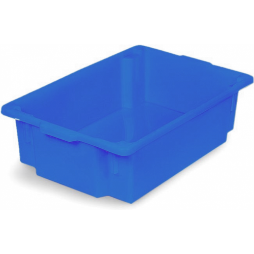 Possui laterais fechadas. Com o potencial para empilhamento (retorno). Portanto, reduz o volume em até 60%. Inclusive, possui pequenos furos no fundo a fim de evitar o acúmulo de líquidos desnecessários.