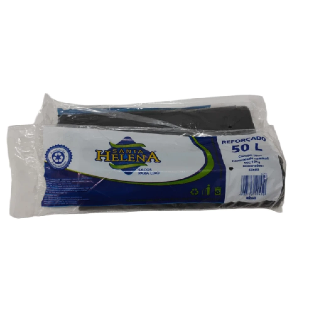 Sacos de lixo preto, capacidade 50 litros, tamanho 63x80cm.