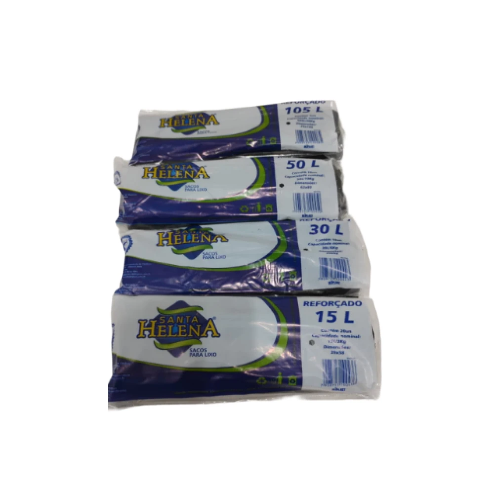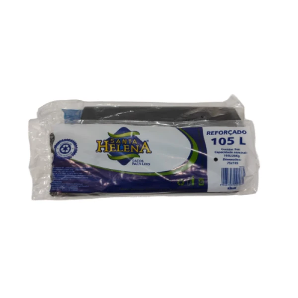 Sacos de lixo preto, capacidade 105 litros, tamanho 75x105cm.
