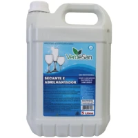 SECANTE E ABRILHANTADOR VERDESAN possui fórmula concentrada, seus componentes potencializam o processo, o que garante no final do ciclo de secagem, louças prontas para a utilização. Atua na quebra da tensão superficial da água, evitando manchas e resíduos promovendo total escorrimento da água nas louças. Indicado para ser utilizado em máquinas de lavar louças com um dosador automático. 5 Littros