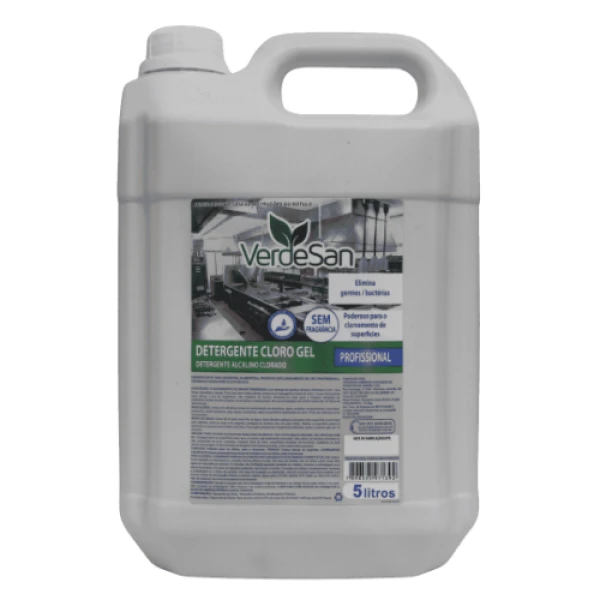 O Detergente Clorado Verdesan é um detergente alcalino clorado, eficiente e 3 em 1 que limpa, desinfeta e clareia. Por ser à base de cloro, é ainda mais eficaz, limpando com facilidade sem muito esforço. Livre de fragrância, não interfere no aroma, tornando-o ideal para a limpeza completa de estabelecimentos de alimentação, como bares e restaurantes. Sua embalagem de 5 litros rende até 150 litros de desinfecção. Limpa eficientemente áreas de manipulação de alimentos, pisos, azulejos, equipamentos, bancadas, banheiros, vasos sanitários, pias, boxes, banheiras, ralos e superfícies resistentes ao cloro. Também pode ser utilizado como branqueador.