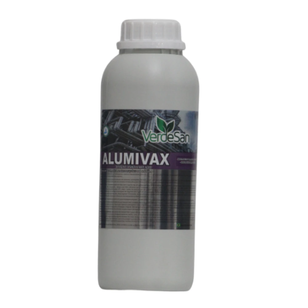 ALUMIVAX é um detergente e desincrustante ácido utilizado principalmente para limpeza, restauração e remoção de incrustações em superfícies de alumínio. Age com muita eficiência e rapidez. Indicado na limpeza e desincrustação de caldeiras, tubulações, tanques de armazenamento, máquinas, misturadores, moinhos, superfícies e peças de alumínio, cobre e inox. Este produto não pode ser utilizado em lava jatos para limpeza de automóveis, chassis, baús, caminhões e motores.