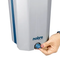 Vem com balde de 10 litros de capacidade total e sistema de dreno